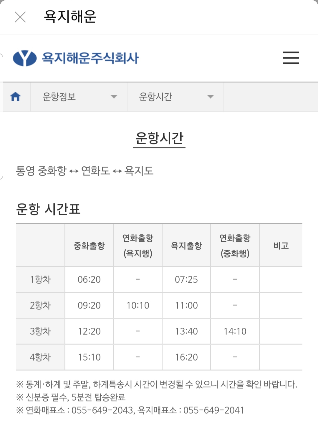 영동해운과 시간이 안맞거나 비용이 고려되신다면 중화항의 욕지수협호를 이용하세용~~