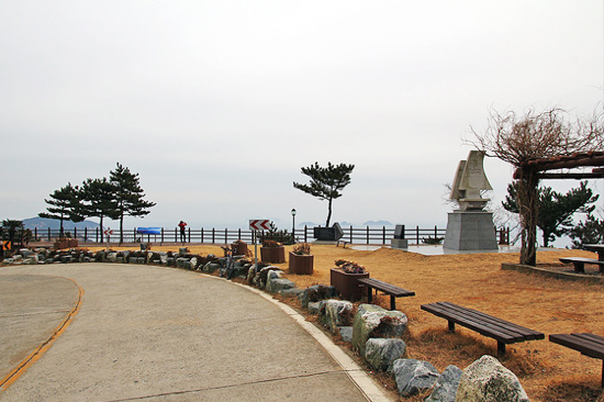 이곳에서 바다를 조망하라는 의미다. 한 쪽에 ‘돌아가는 배’라는 시비가 있다.